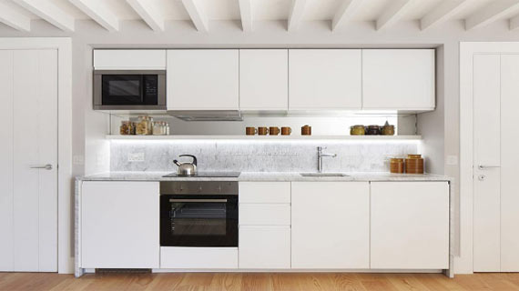 3、廚房天花板相對間單一些,但是要預留充夠的電線,可以去商家訂做廚房用品,頂面不要用木質(zhì)產(chǎn)品